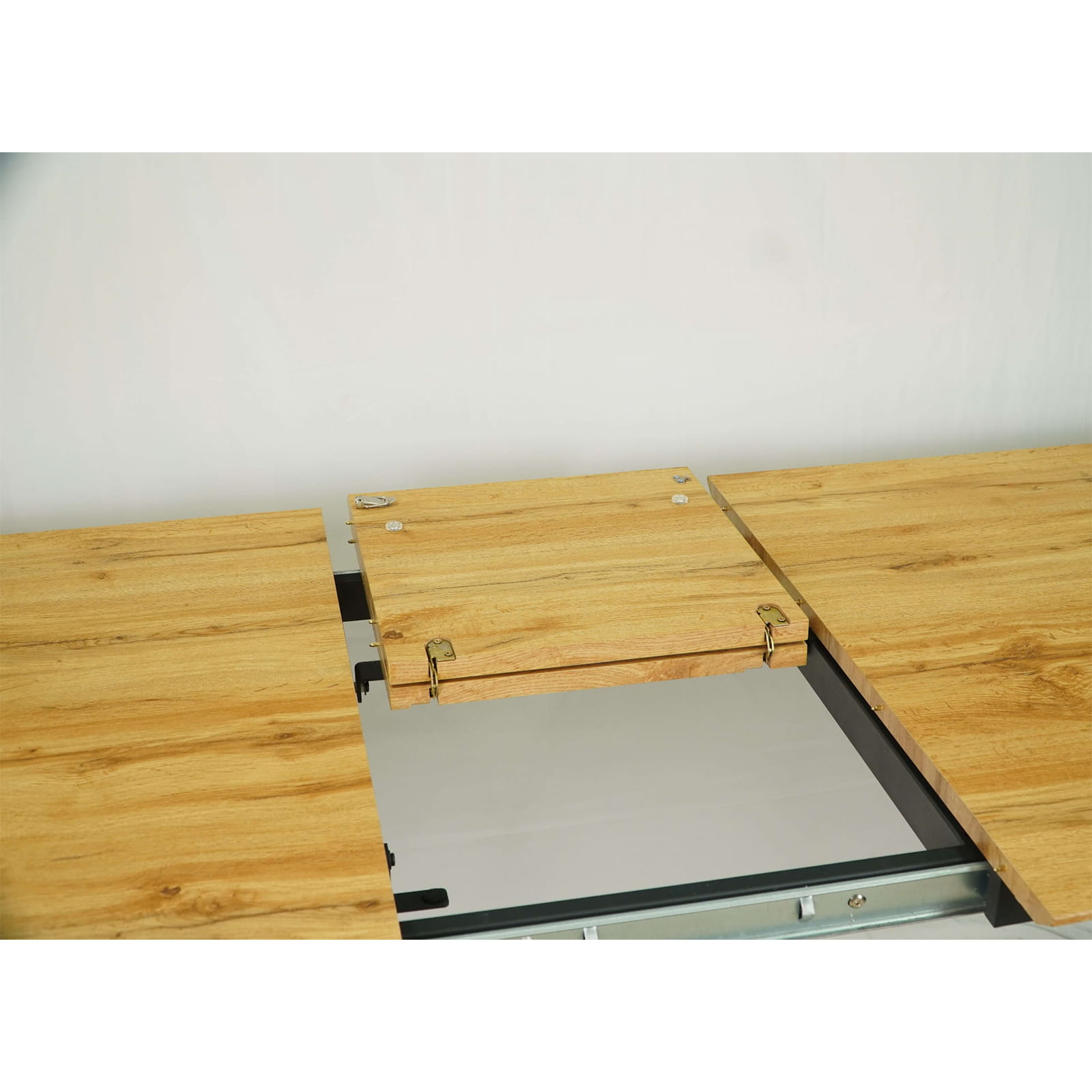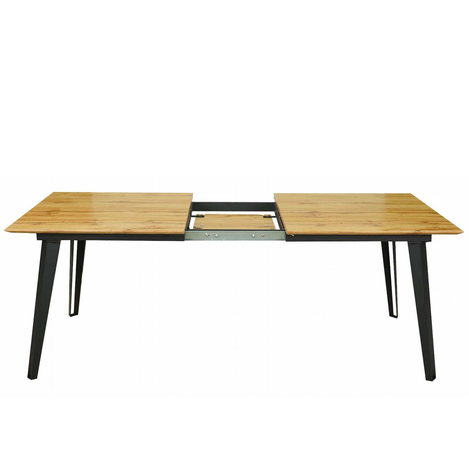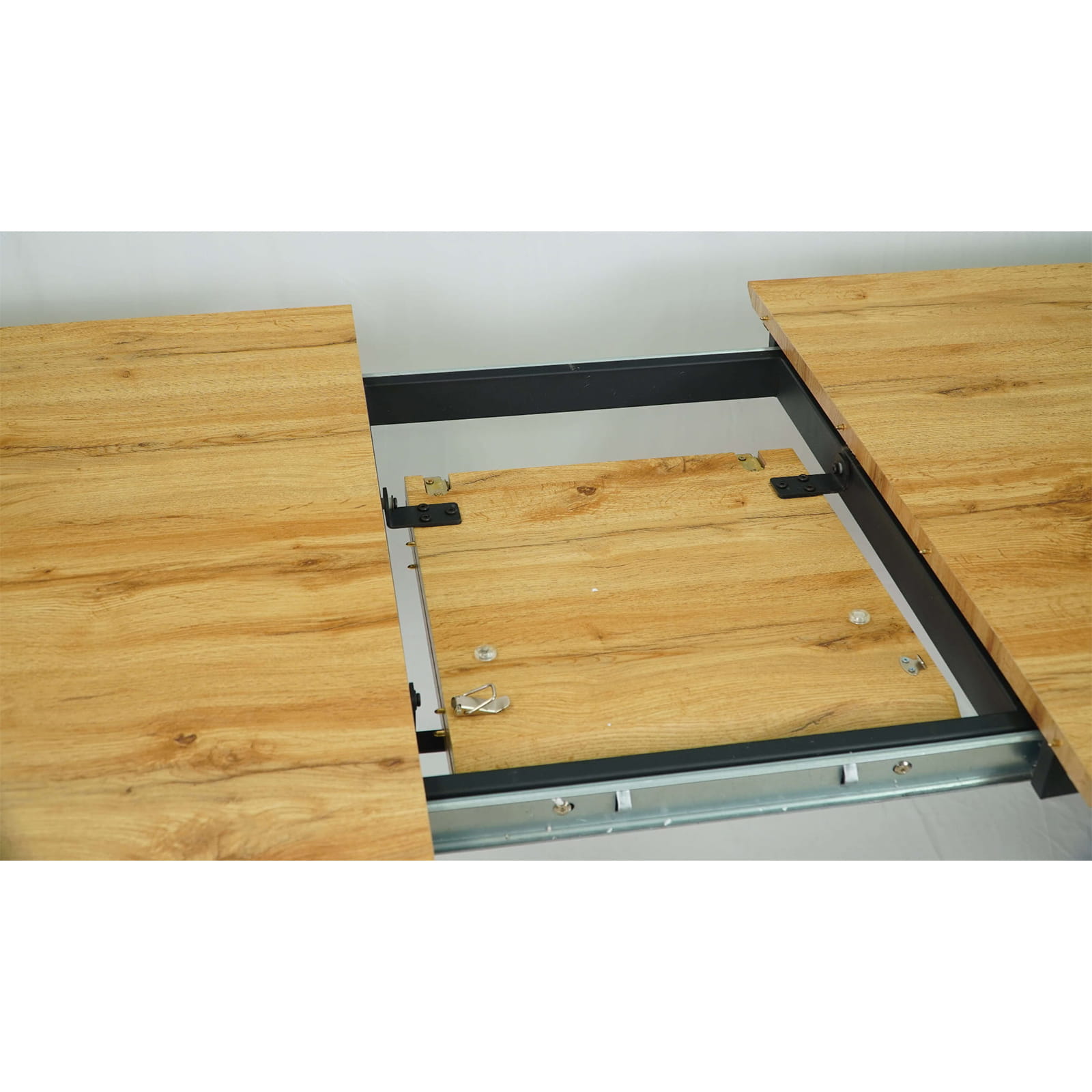 Stół do jadalni salonu loft industrialny stół rozkładany dąb naturalny 160x90+40cm 200x90cm czarne metalowe nogi panama