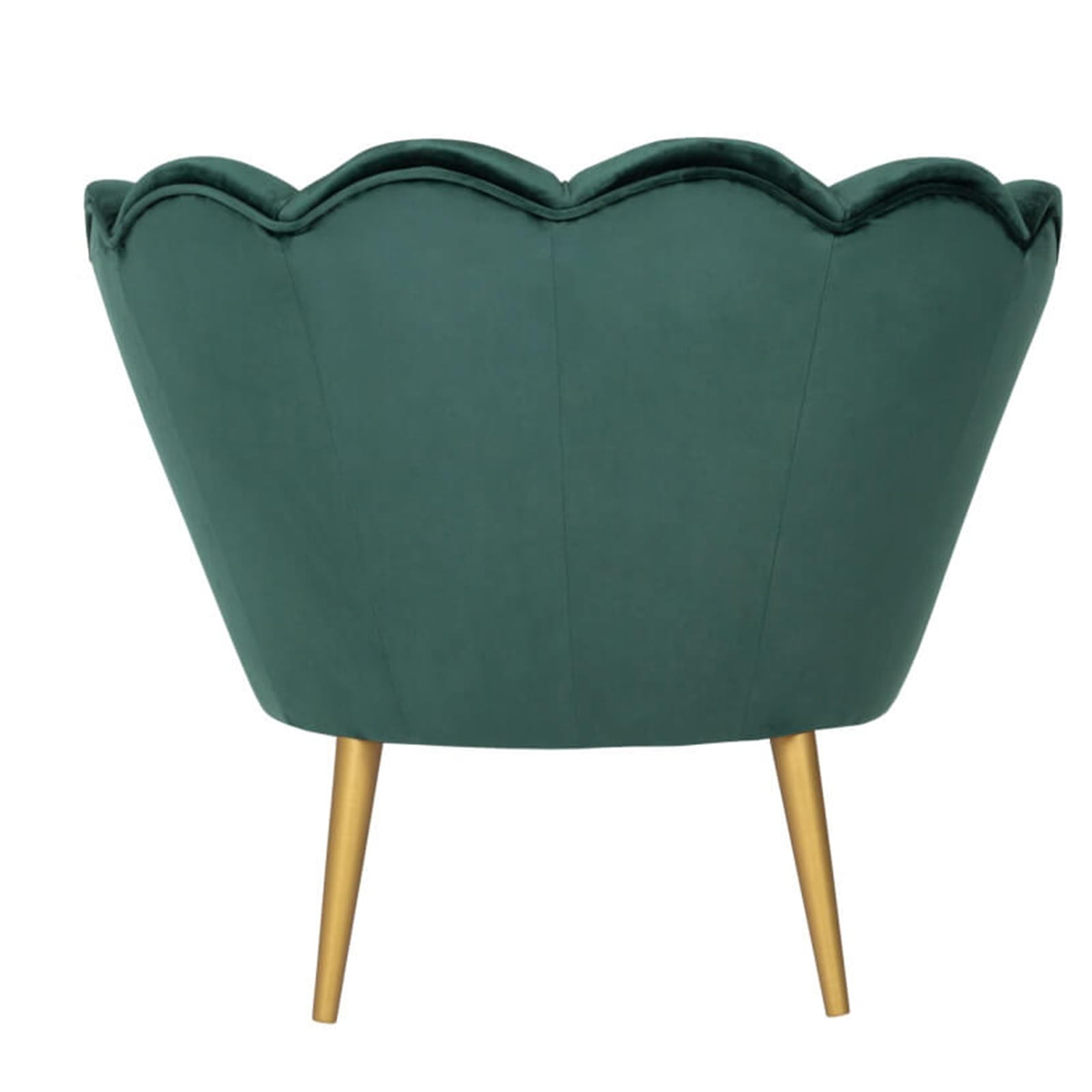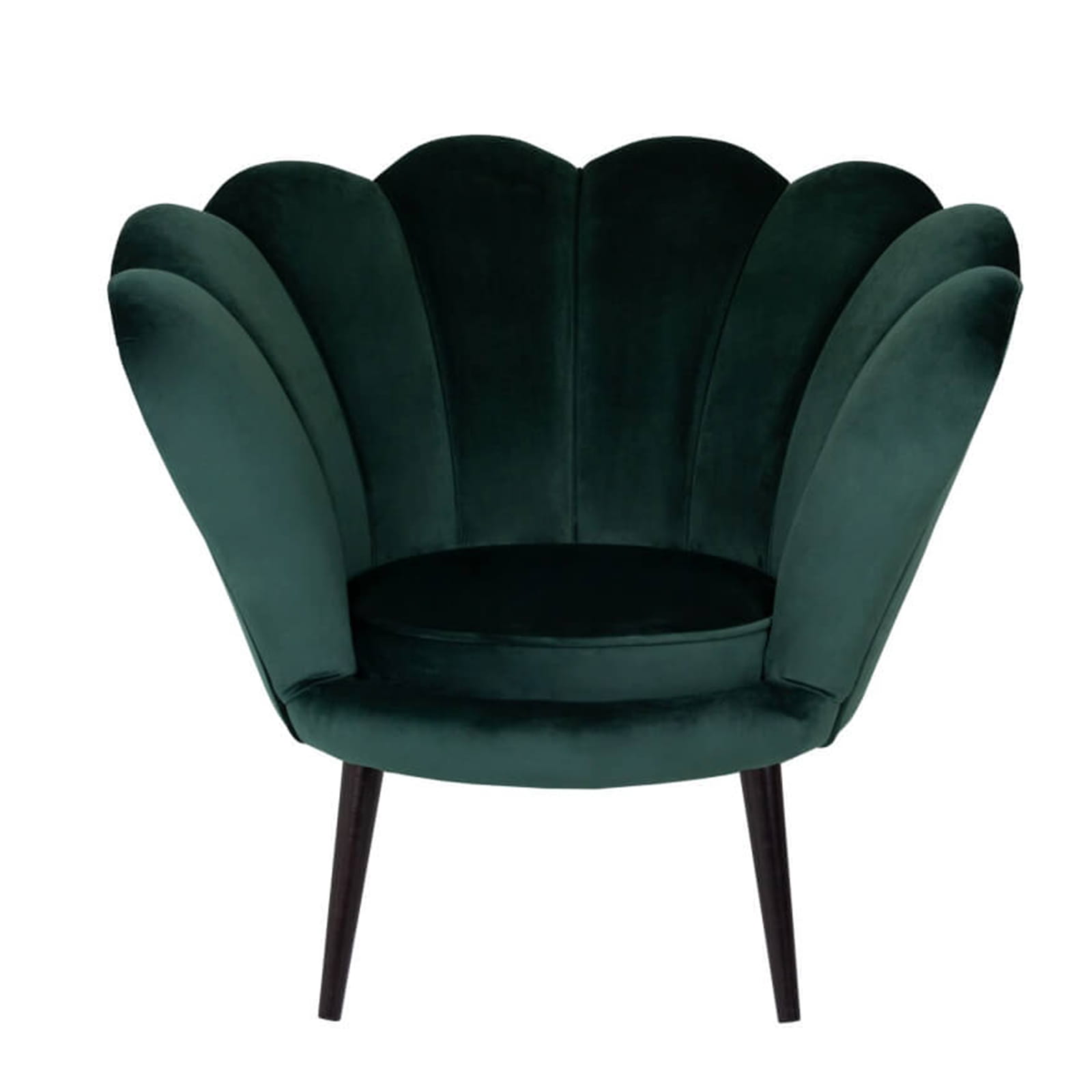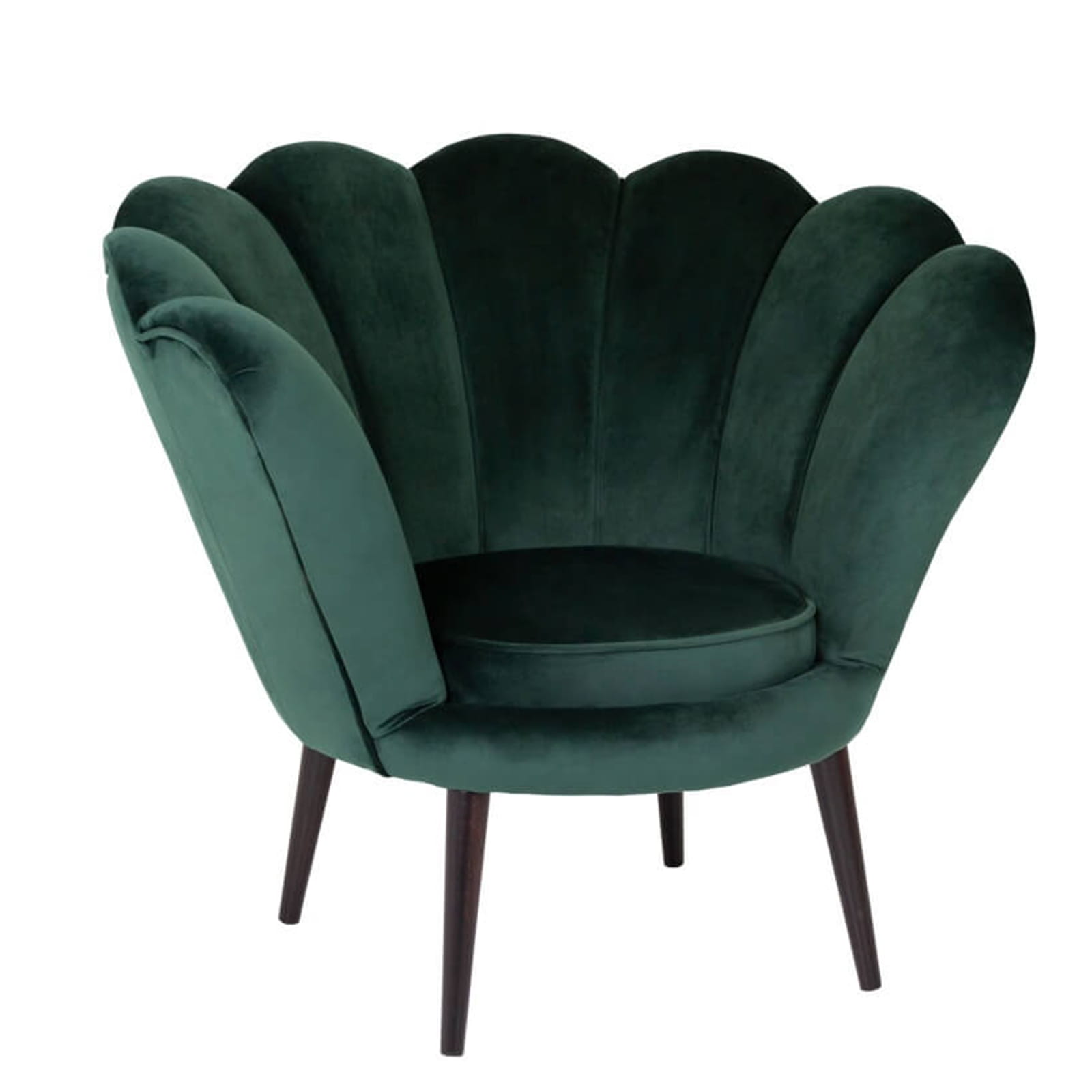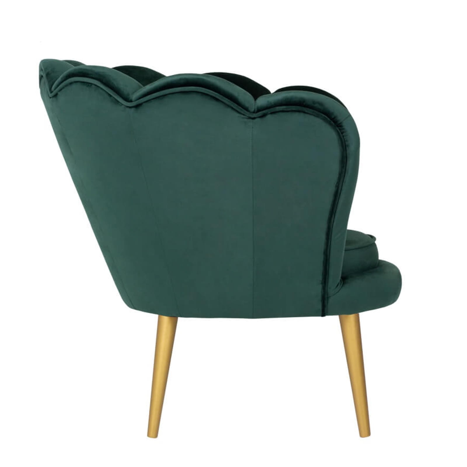 Fotel skandynawski muszelka welur velvet do salonu czarne złote drewniane nogi zielony butelkowa zieleń tristan