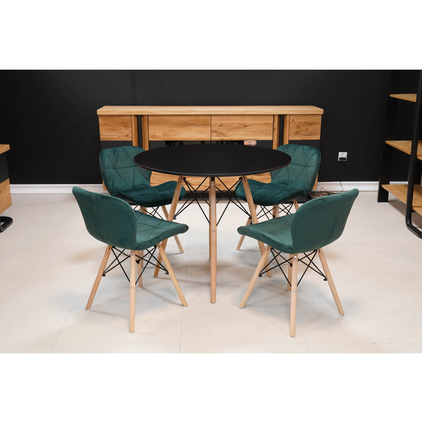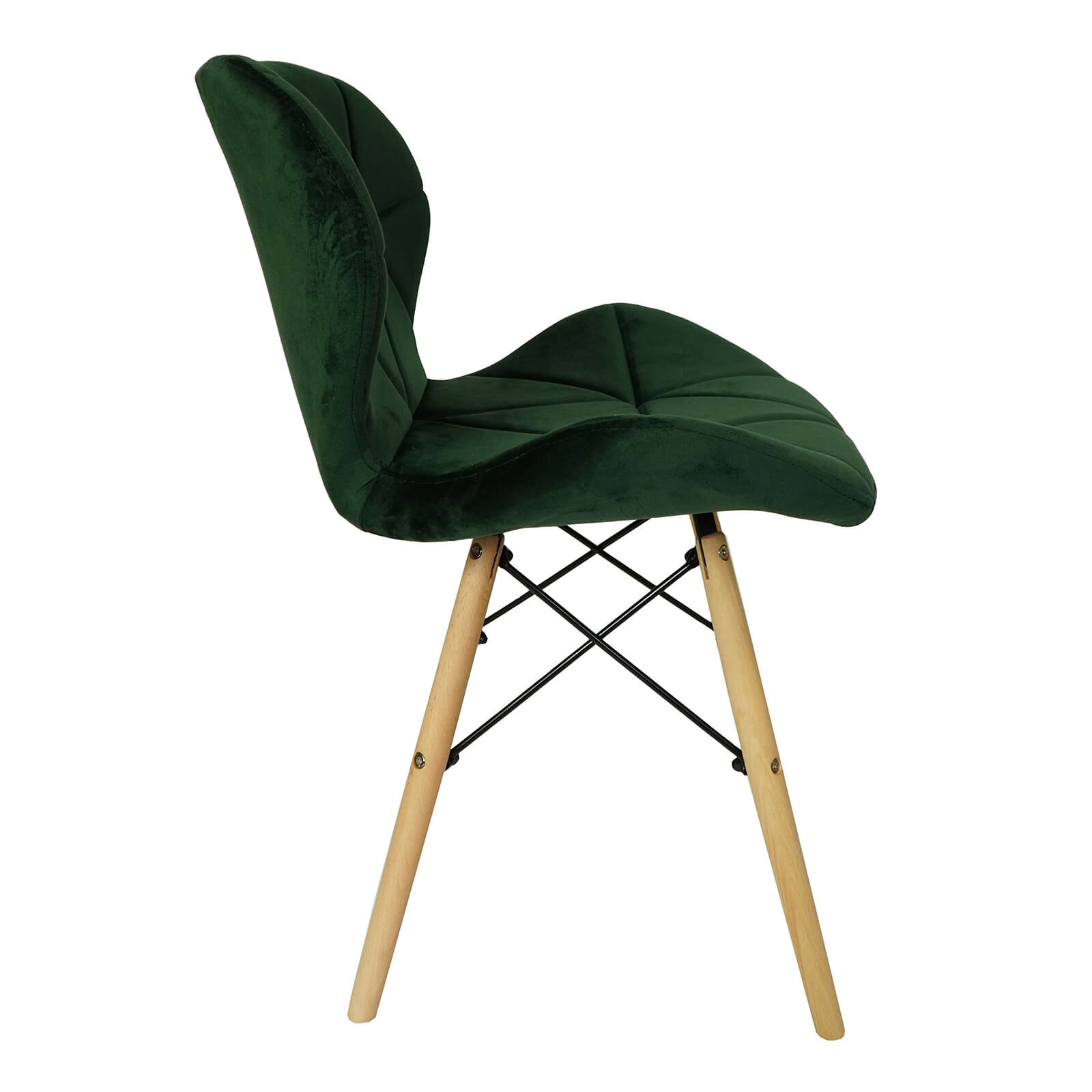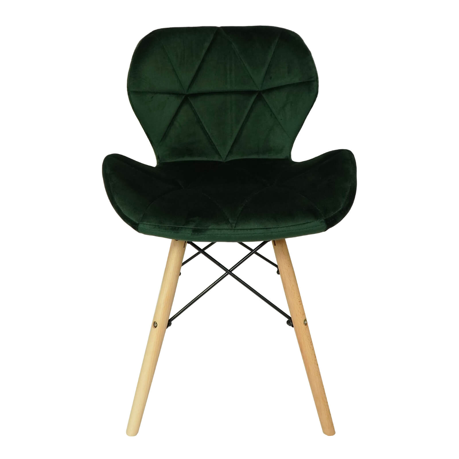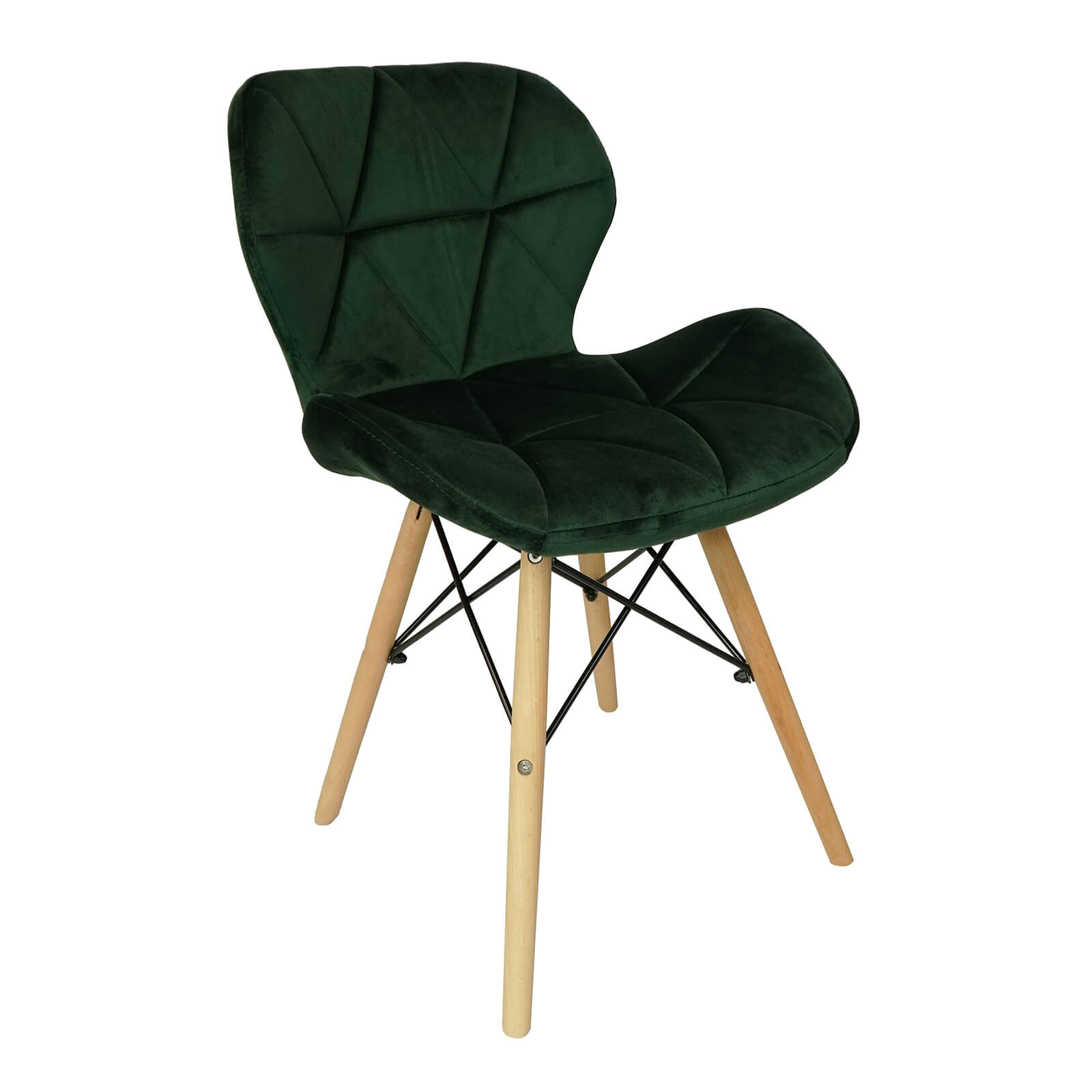 Krzesło tapicerowane skandynawskie do jadalni salonu welur zielone butelkowa zieleń velvet drewniane nogi m