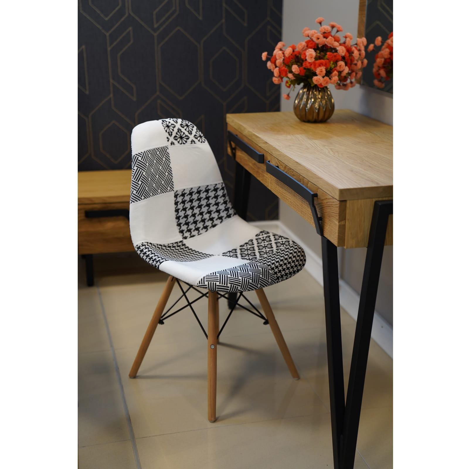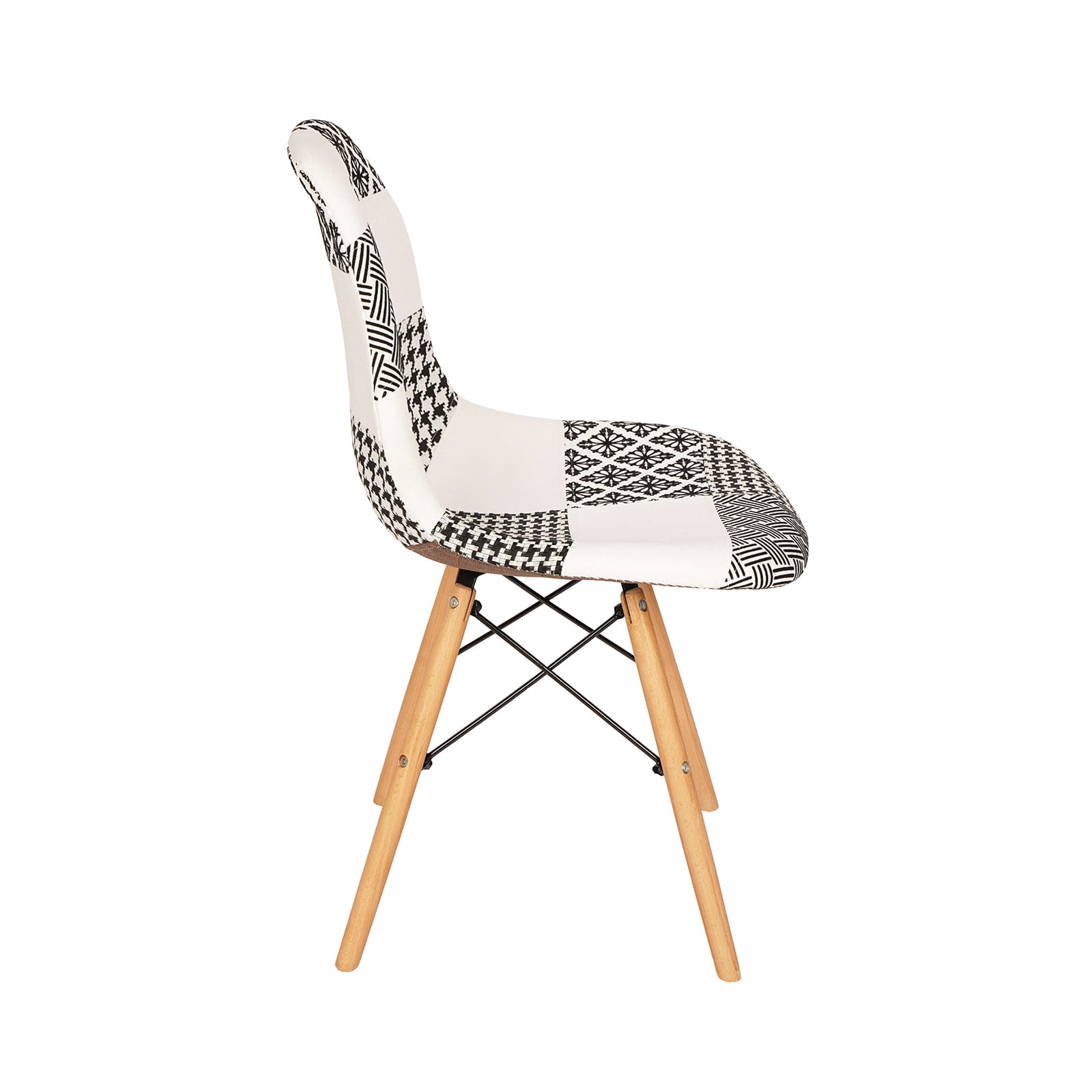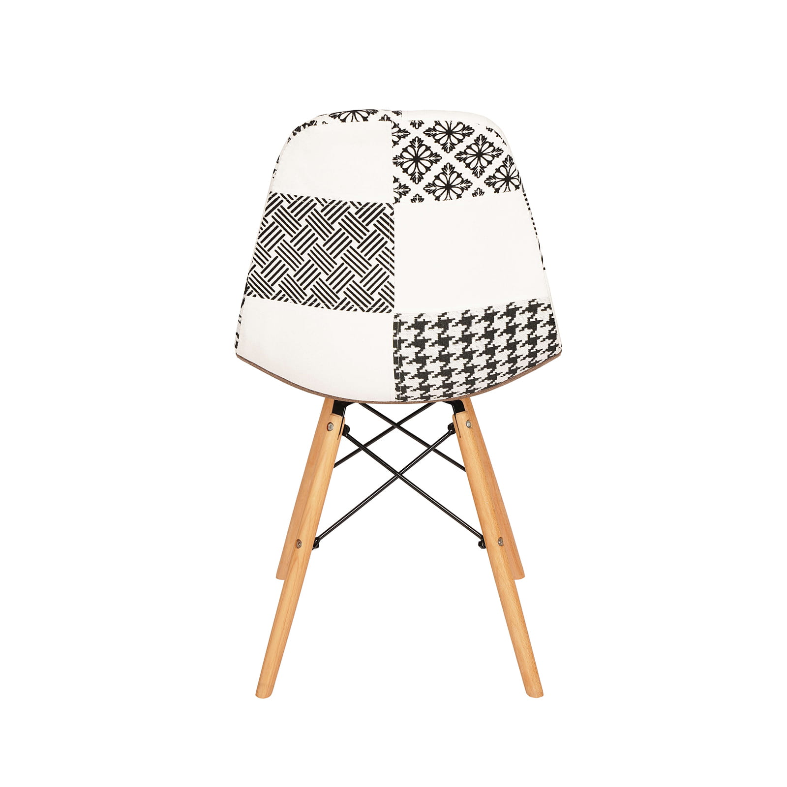 Krzesło tapicerowane skandynawskie drewniane nogi patchwork biały czarny p b