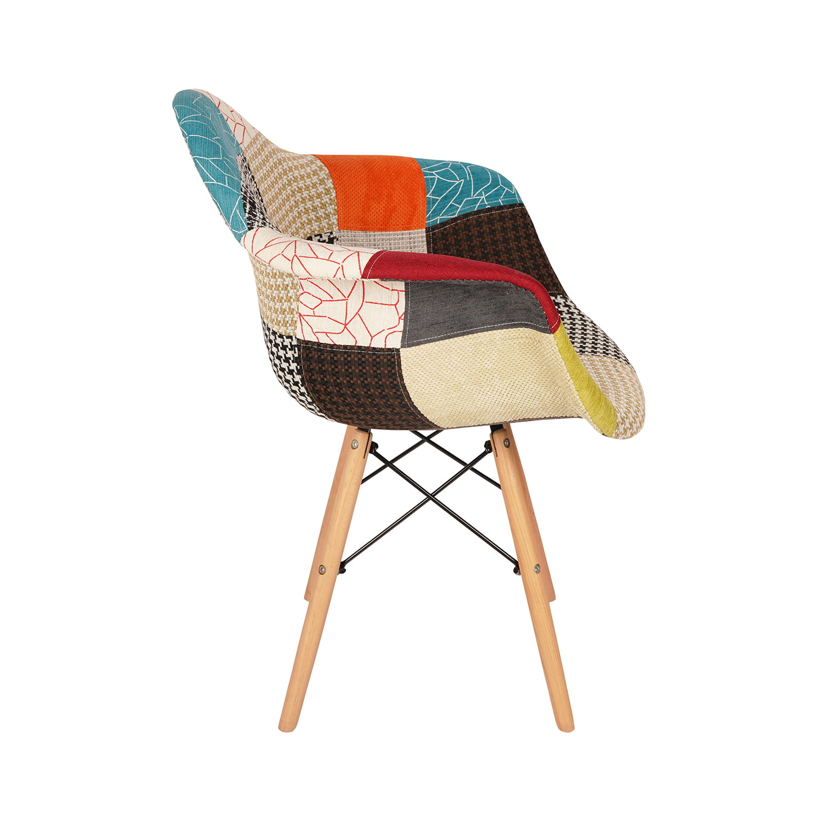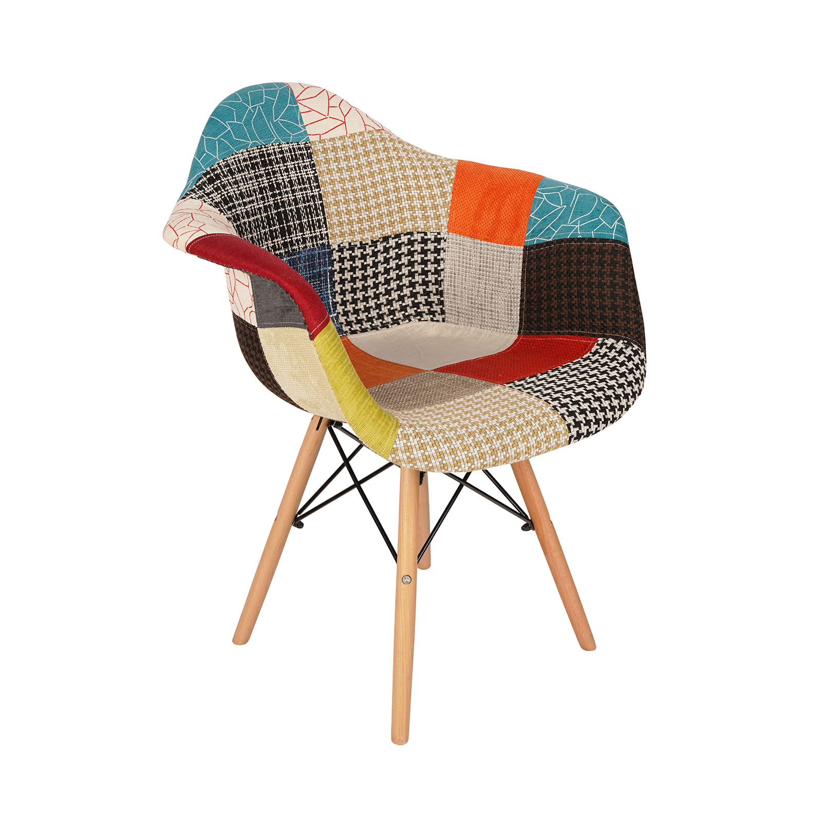 Krzesło z podłokietnikami do jadalni salonu kuchni patchwork drewniane nogi wielokolorowe skandynawskie tapicerowany fotelik t
