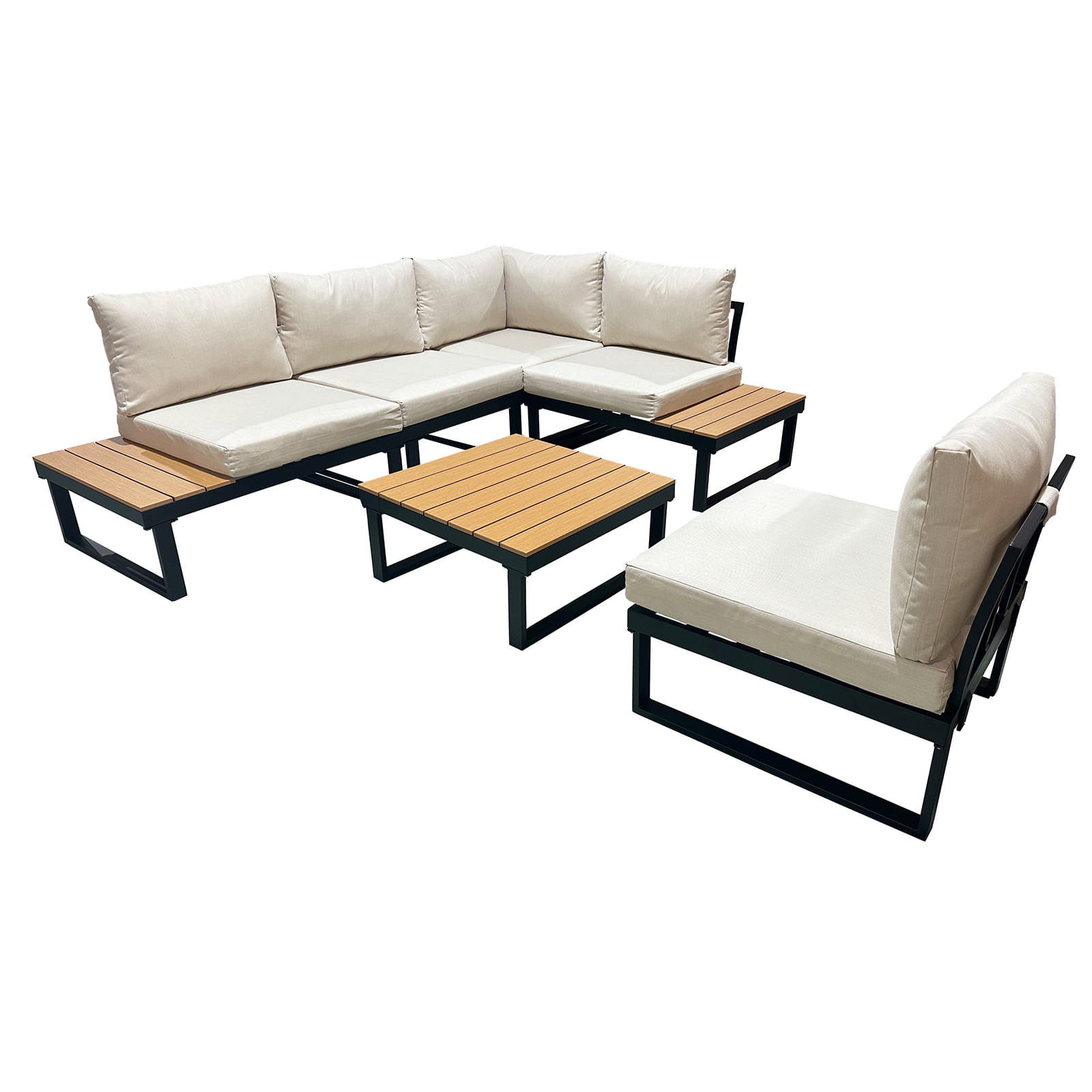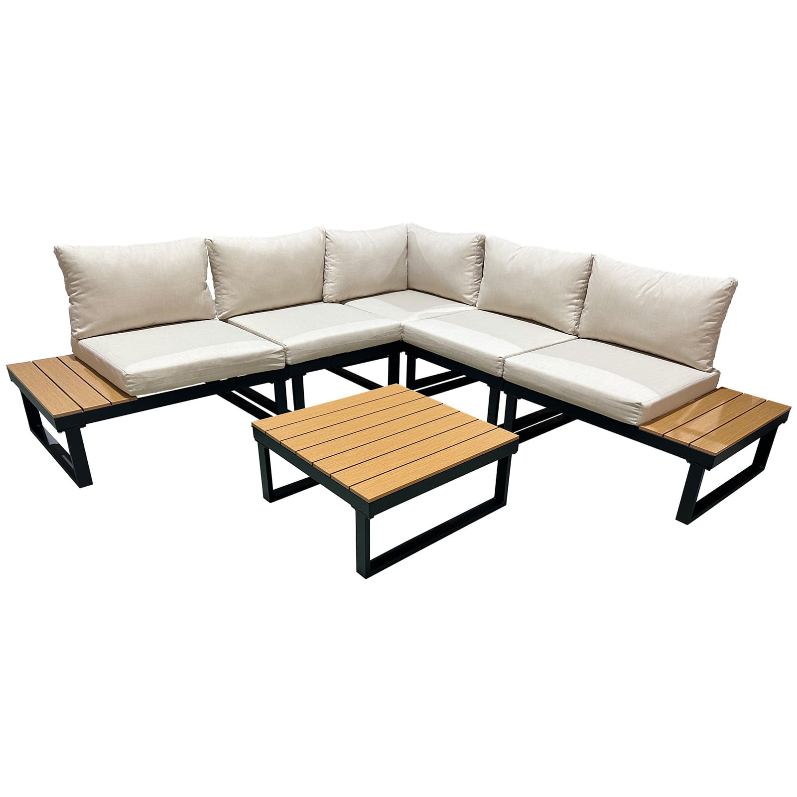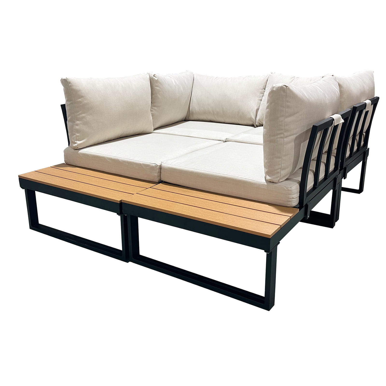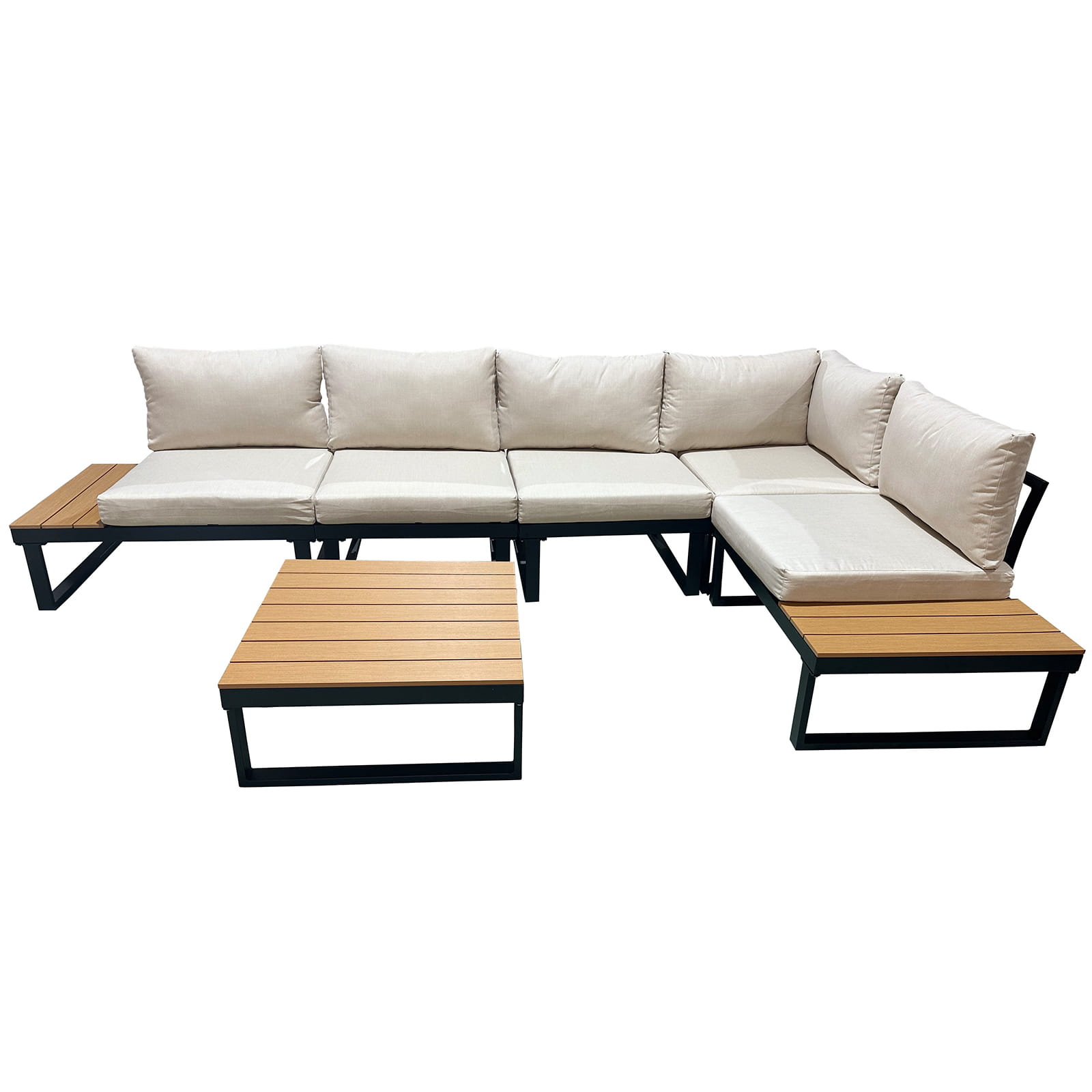 Meble ogrodowe zestaw mebli ogrodowych narożnik modułowy narożnik ogrodowy na taras patio do ogrodu aluminium beżowy lisa beż